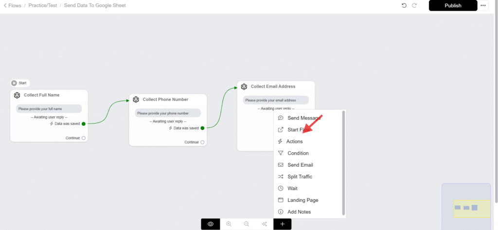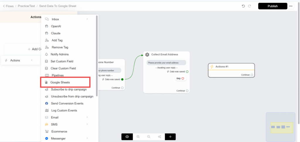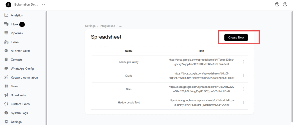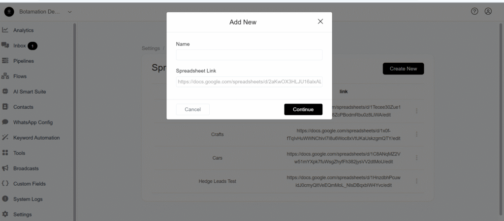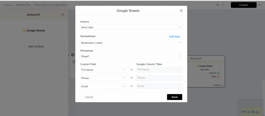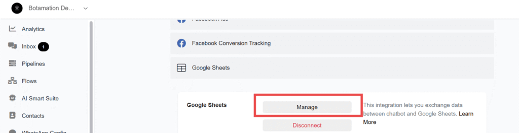To Send Data To Google Sheet, First Connect the SpreadSheet in Botamation
