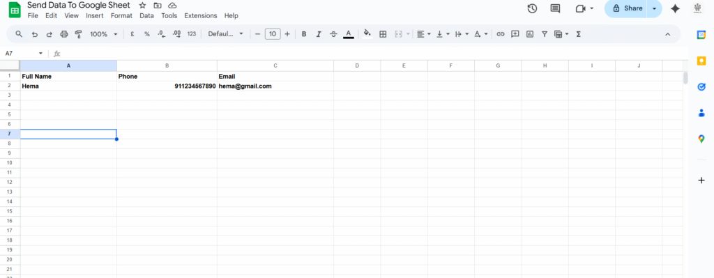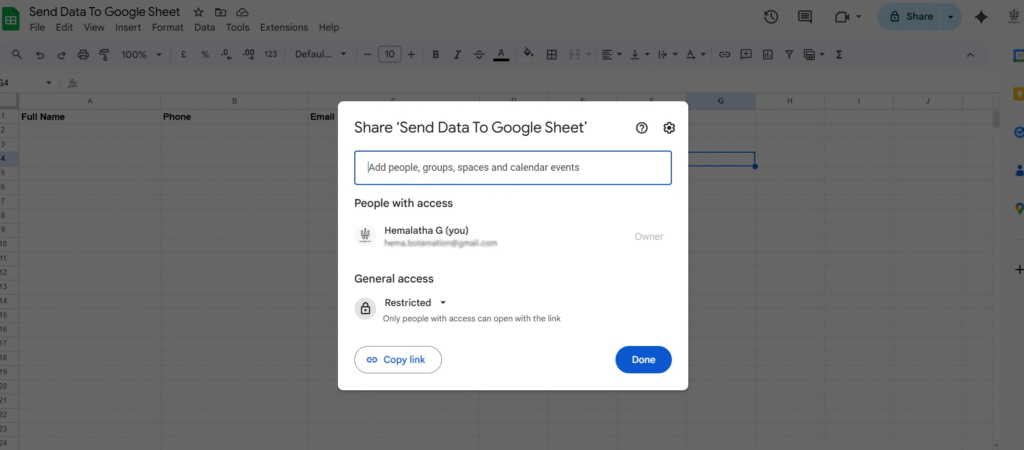 Create a new Google Sheet with the columns and click on Share and copy the link